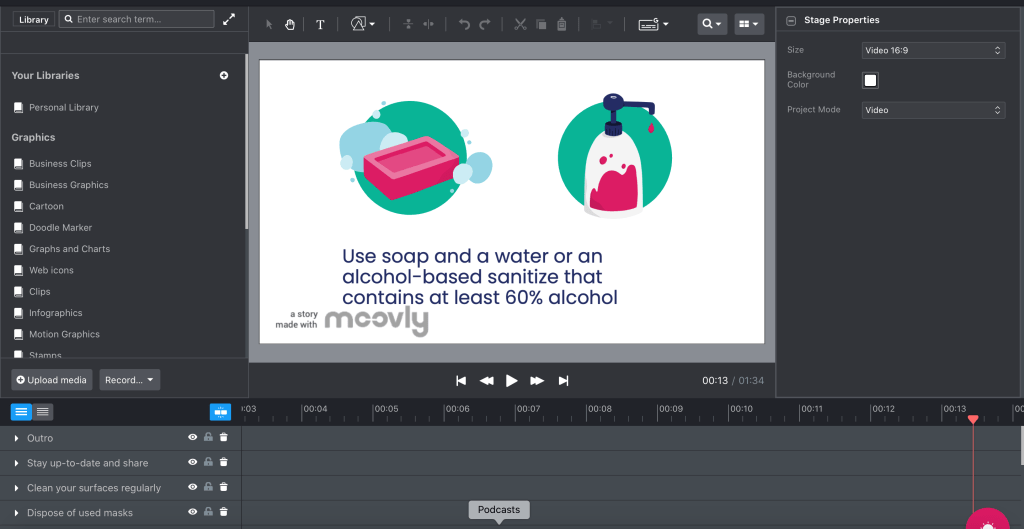 For this project I created a video to explain the best social and behavioral practices to minimize the spread of COVID-19. I am a novice video creator so I used the site Moovly which provides templates for beginners. I selected the templates I wanted to use and I chose this one because it was the most concise. I then updated it with the specific tips I wanted to convey and I added this website link and my club’s logo at the end of the video. The experience was a bit liberating as it allowed me to explore innovative ways to communicate healthcare information.
